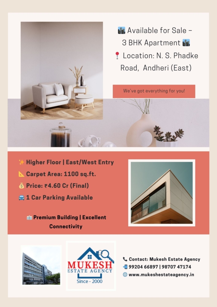 β’β β Prime Location near N.S. Phadke Road β Easy Access to Western Express Highway & Railway Station